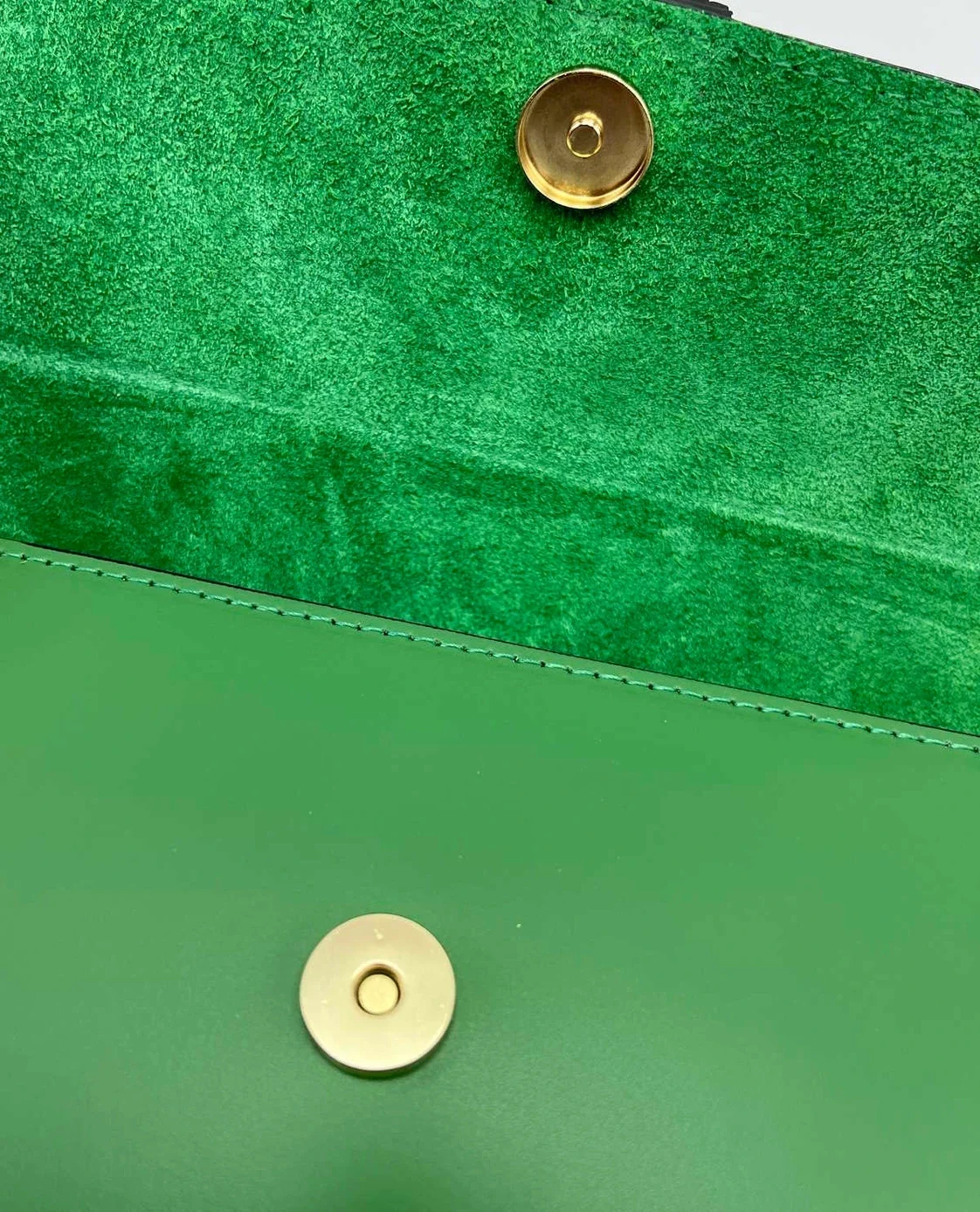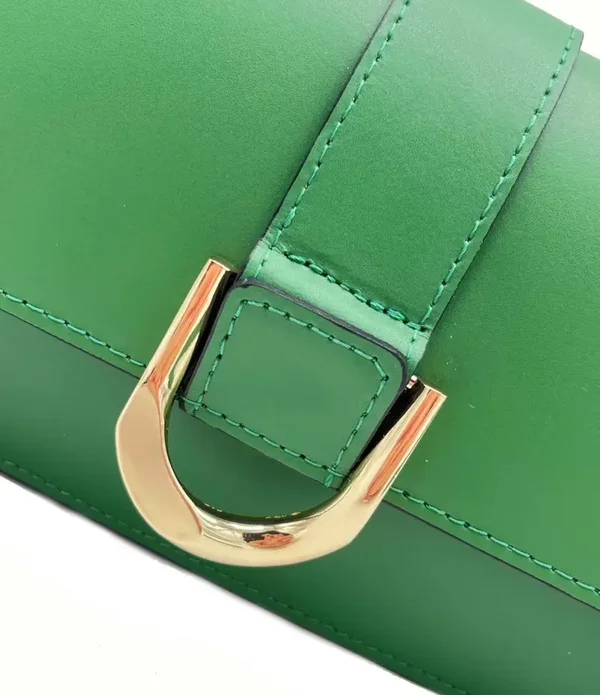 Met haar geometrische vorm en diepe groentint brengt ze rust en klasse in elke look.