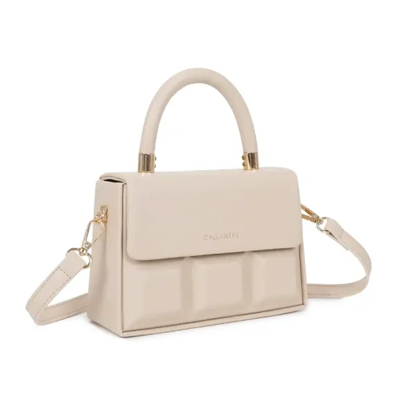 Laat u verleiden door ChocoLuxe, een handtas met een onweerstaanbaar design, geïnspireerd door de zachtheid en elegantie van chocolade. De fijn gebeeldhouwde geometrische vormen doen denken aan een verfijnde chocoladereep en bieden een moderne en smakelijke esthetiek. Het gladde imitatieleer geeft het een verfijnde uitstraling en voelt prettig aan, terwijl de gouden metalen details een luxueuze touch toevoegen. Compact en functioneel, ChocoLuxe is ontworpen om stijl en praktisch nut te combineren, perfect om uw dagen en avonden met elegantie te vergezellen.