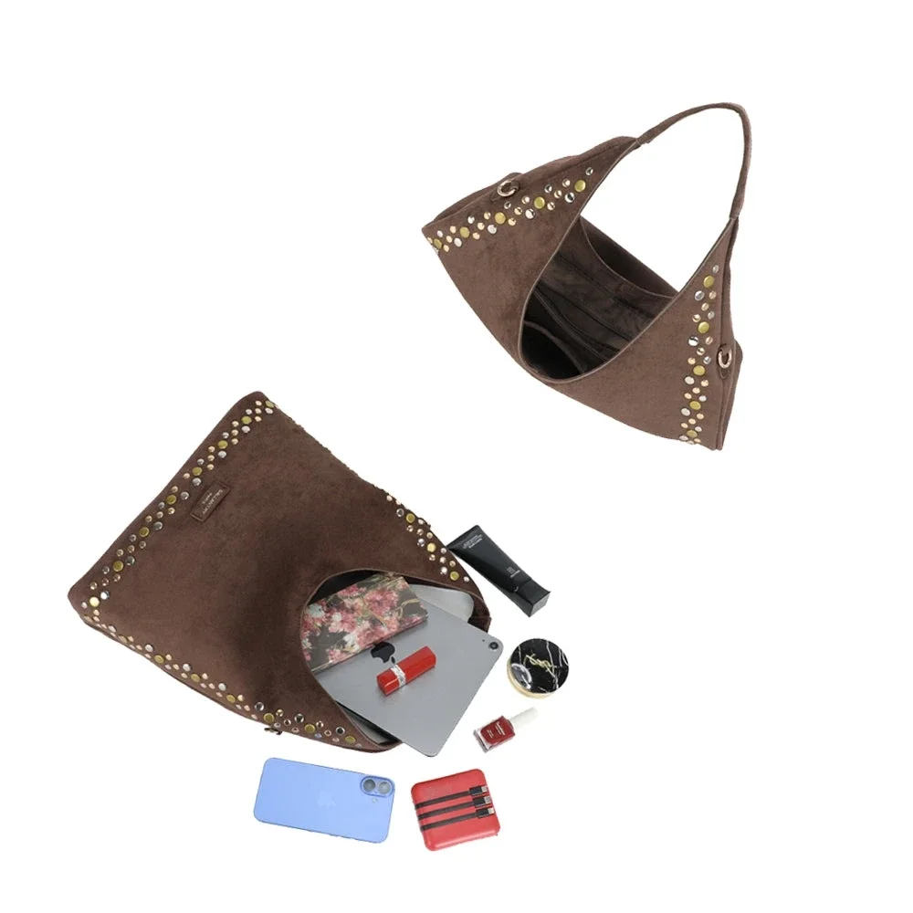 De Soléane verleidt ons met zijn soepele en elegante silhouet, geïnspireerd door een bohemien chique stijl. Het royale formaat en het suède-effect materiaal geven het een natuurlijke en verfijnde uitstraling, perfect om zowel een casual outfit als een meer geklede look te begeleiden. De gestikte afwerkingen voegen een vleugje karakter toe, terwijl ze subtiel en harmonieus blijven. Dankzij de dubbele draagwijze kan het comfortabel over de schouder of als crossbody worden gedragen, waardoor het zich aanpast aan alle dagelijkse situaties. Functioneel & goed georganiseerd interieur Het interieur biedt een mooie opbergruimte, ideaal voor het opbergen van uw essentials: portemonnee, telefoon, make-up, notitieboekje of kleine tablet. Het flexibele ontwerp maakt dagelijks gebruik gemakkelijk en aangenaam, terwijl uw spullen goed georganiseerd blijven. De details die het verschil maken